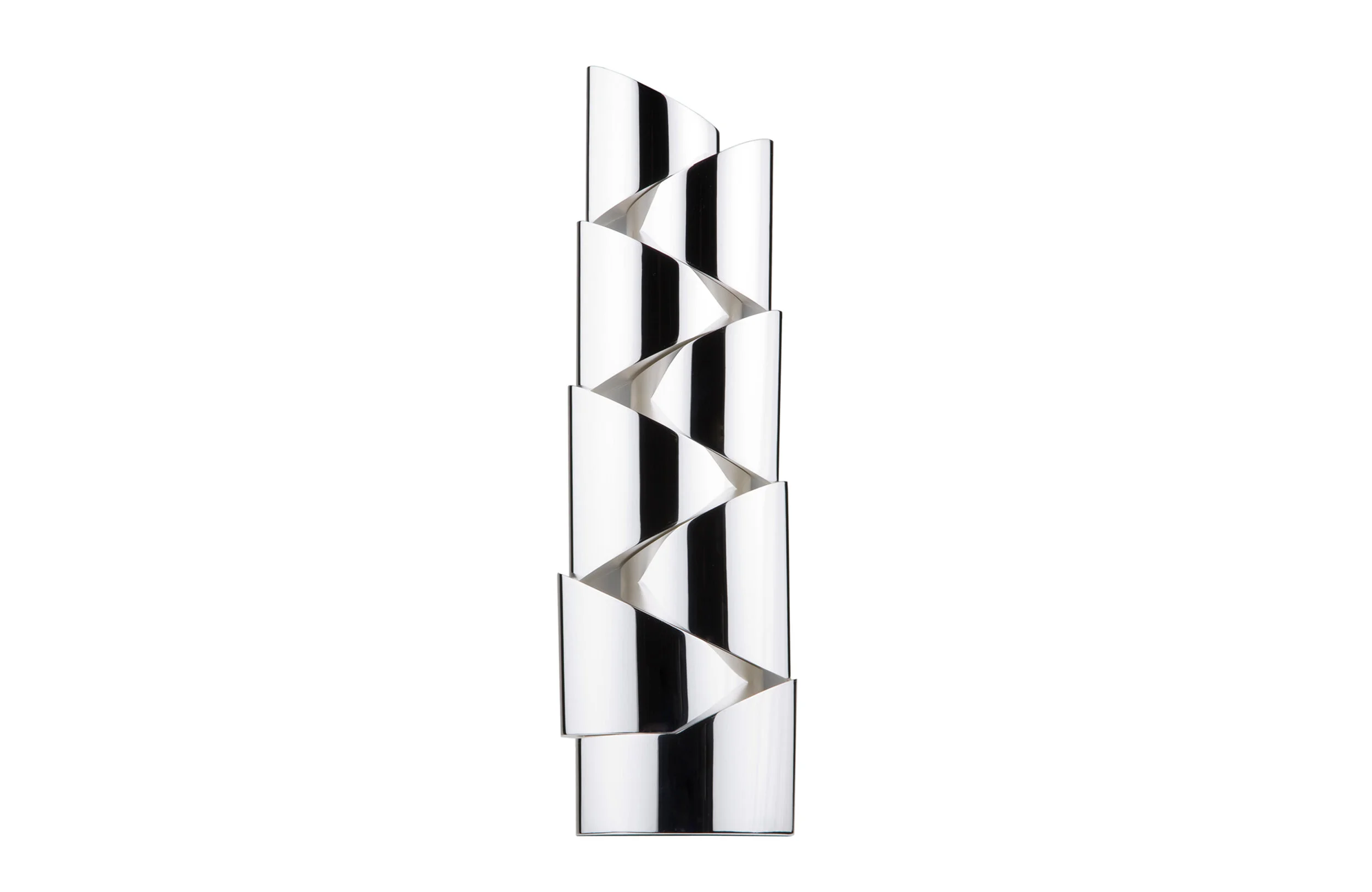 The Rotation Centrepiece featuring hand-polished silver & nickel plated brass offers exceptional sculptural aesthetic. Characterised by a beautiful stepping silhouette, this piece has been sculpted by hand by our skilled craftsmen. Featuring horizontal undulating surfaces which flow around the vessel’s body, creating a mesmerising motion effect.